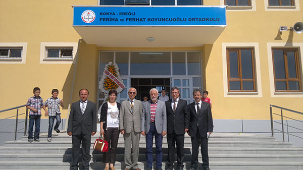 Eşi rahmetli Feriha Koyuncuoğlu ile birlikte yıllarca şehrimiz insanına eğitim ve öğretim görevini başarı ile yerine getirmiş ve şehrimize Feriha-Ferhat Koyuncuğlu adı ile açılan okulun da arsa tahsisini sağlayarak büyük bir hayır işlemişlerdir.